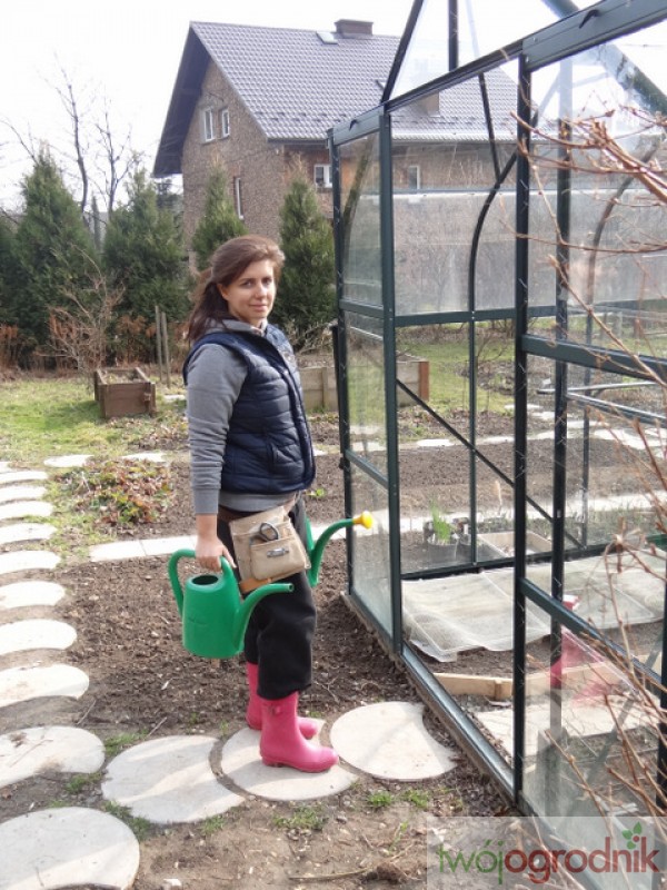 W szklarni stoją jeszcze kuwety z wysianymi zimą bylinami, skrzyneczki z pikówkami (które za kilkanaście dni będziemy przesadzać do gruntu), doniczki z korzeniowymi sadzonkami zawilców. Lada moment trzeba będzie je wynieść poza szklarnię, bo Andrzej już chce kopać dołki pod pomidory i ustawiać podpórki