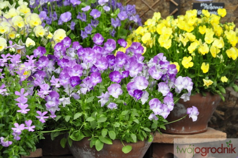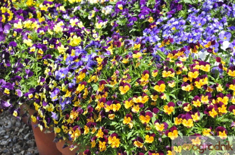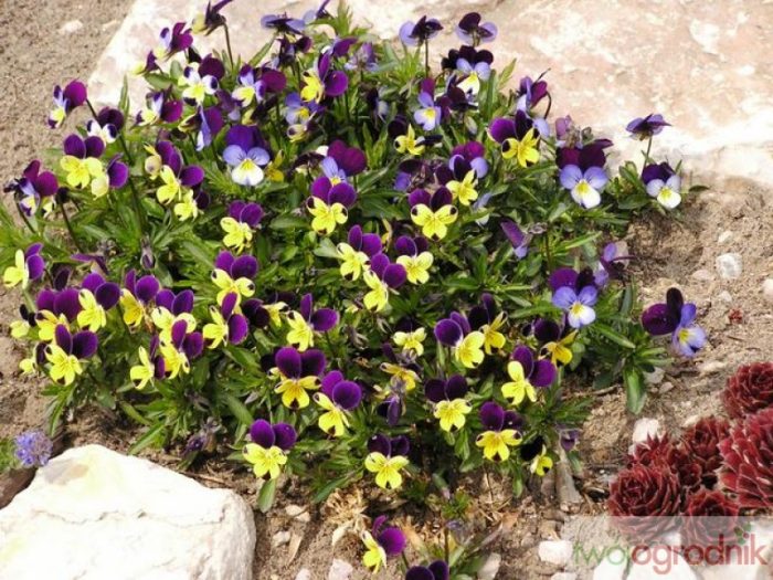Najpopularniejsze i najbardziej trwałe są te o fioletowo-żółtych kwiatkach. Potrafią bardzo szybko zadomowić się w ogrodzie i wyrastać w różnych niespodziewanych miejscach, bowiem same się wysiewają, a ich malutkie siewki potrafią przetrwać pod śniegiem nawet silne mrozy. Kiedy rosną w większym skupisku, ich kępa wygląda bardzo malowniczo.