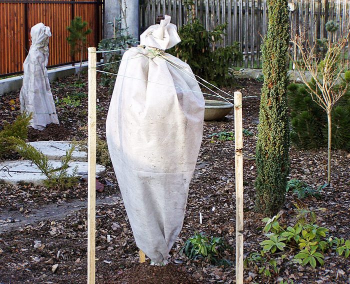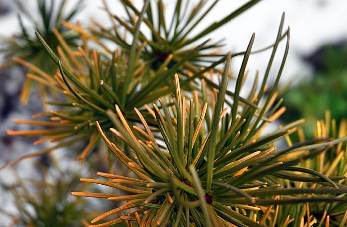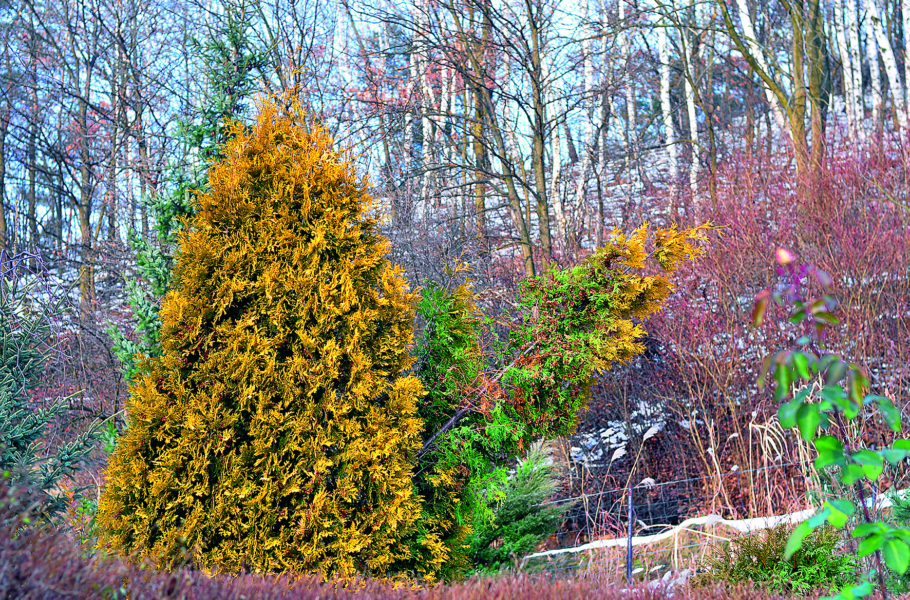 Iglaki po zimie wymagają szczególnej uwagi. Niektóre pod naporem śniegu się rozłamały. Jeżeli nie są zupełnie połamane, można je powiązać miękkim sznurkiem nadając pierwotny kształt. Jeżeli zaś są wyłamane, to należy pędy wyciąć. Czasami nawet cały iglak wymaga mocnego skrócenia, aby się odbudował. Wiosną zasilcie iglaki kompostem i nawozami z dużą ilością magnezu, aby przeciwdziałać brązowieniu igieł i pędów.