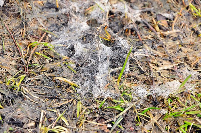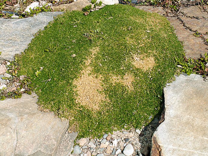 Często po zimie trawnik ma objawy pleśni śniegowej w postaci gołych placów lekko pokrytych jakby pleśnią. Jest to zespół różnych grzybów, który pojawił się pod śniegiem. Wiosną takie miejsca należy dobrze wygrabić i łyse place wzruszyć ostrymi grabiami. Dobrze jest też nasypać troszkę przepuszczalnego podłoża i wsiać nasiona traw (najlepiej mieszankę zbliżoną do tej, z której zakładaliście trawnik).