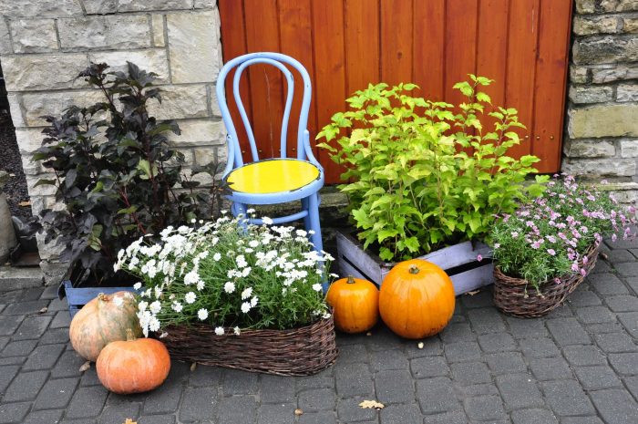kolory rozweselają zakątek ozdobiony dyżurnymi dyniami i chryzantemami