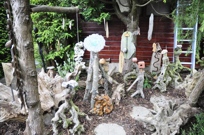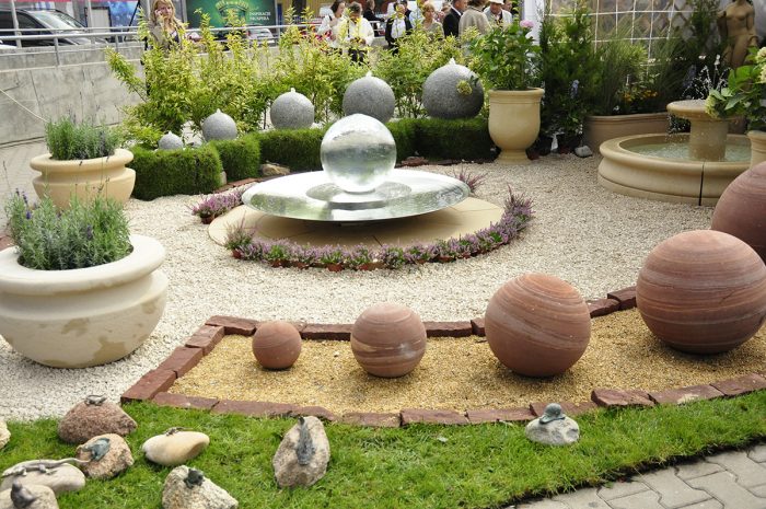 kule ozdobne. Możemy też wykorzystać różnego typu barwne rzeźby i posążki. Możliwości są tu nieograniczone. Począwszy od konewek, wiaderek, plastikowych pojemników ogrodowych, drabinek i innych przedmiotów użytkowych, poprzez różne figurki oraz bryły geometryczne, po bardziej nowoczesne abstrakcyjne obiekty. Pamiętajcie jedynie, aby przedmioty nieodporne na działanie niskich temperatur schować przed nadejściem większych mrozów.