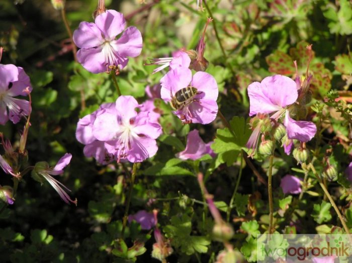 Mniejsze powierzchnie w słońcu, a takze w półcieniu możesz okryć bodziszkiem kantabryjskim o jasnoróżowych kwiatach, tworzącym dość szerokie kępy wysokości 30 cm. Dobrze przetrzymuje nawet dłuższe okresy suszy.