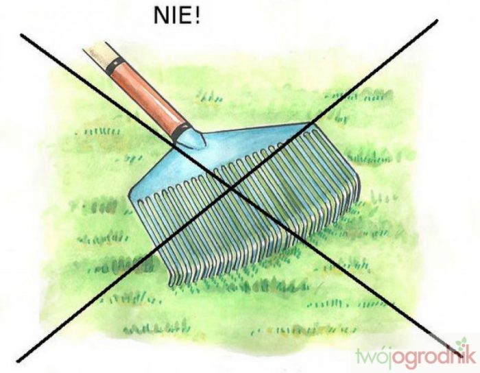 Usuwanie takiego futra to ciężka praca i musi być wykonana dokładnie. Robotę ułatwią ci specjalne grabie z ostrzami zamiast zębów. Grabić trzeba najpierw w jedną, potem w drugą stronę, a następnie wyczesać trawnik grabiami drucianymi. Po takim zabiegu trawa złapie oddech i będzie ładnie odrastać.