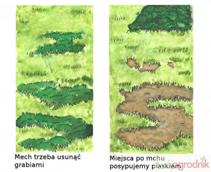 Zwalczanie mchuSamo stosowanie nawozów lub środków zwalczających mech nie wystarczy. Preparaty chemiczne mogą nieco pomóc, jednak trzeba je stosować łącznie z napowietrzaniem, piaskowaniem, wapnowaniem i odwadnianiem miejsc, w których zbiera się woda.